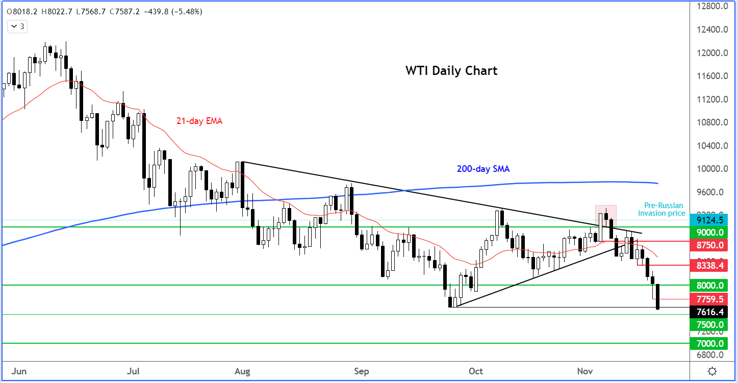 如果《华尔街日报》报道属实,那本周就做好准备迎接油价进一步下跌。市场担忧中国会因为新冠病例增多而扩大封控,石油需求在流动性减弱的经济环境下萎缩。