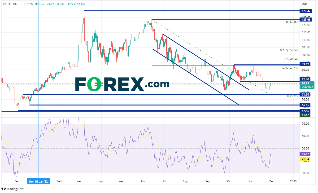 不过随着会议临近,“消息人士”称OPEC+将保持产量不变。此前,OPEC+于10月减产2,000,000桶/日,令市场感到意外。中国试图重塑其制造业的不确定性增加了OPEC+维持产量不变的可能性。中国的疫情和限制导致人们担心需求不足,从而拉低油价。然而,在过去几天里,中国宣布了几项新措施,有助于放宽疫情管控,其中包括制造业城市郑州。商店、电影院、出租车和地铁将重新开放。另一方面,中国于周三发布了11月份的国家统计局制造业PMI。此数据为48,而预期为49,前值为49.2,这是自4月以来的最低水平。疫情带来的中国制造业放缓和不确定性增加了委员会等待一切尘埃落定后再调整产量的可能性。