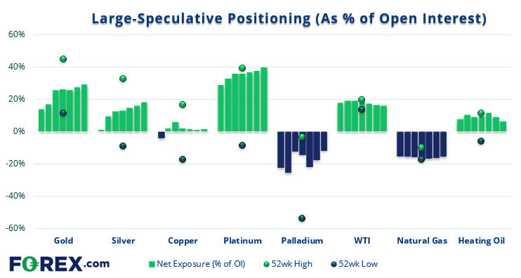 - 铂金期货净多头敞口处于2021年5月以来最看涨的水平