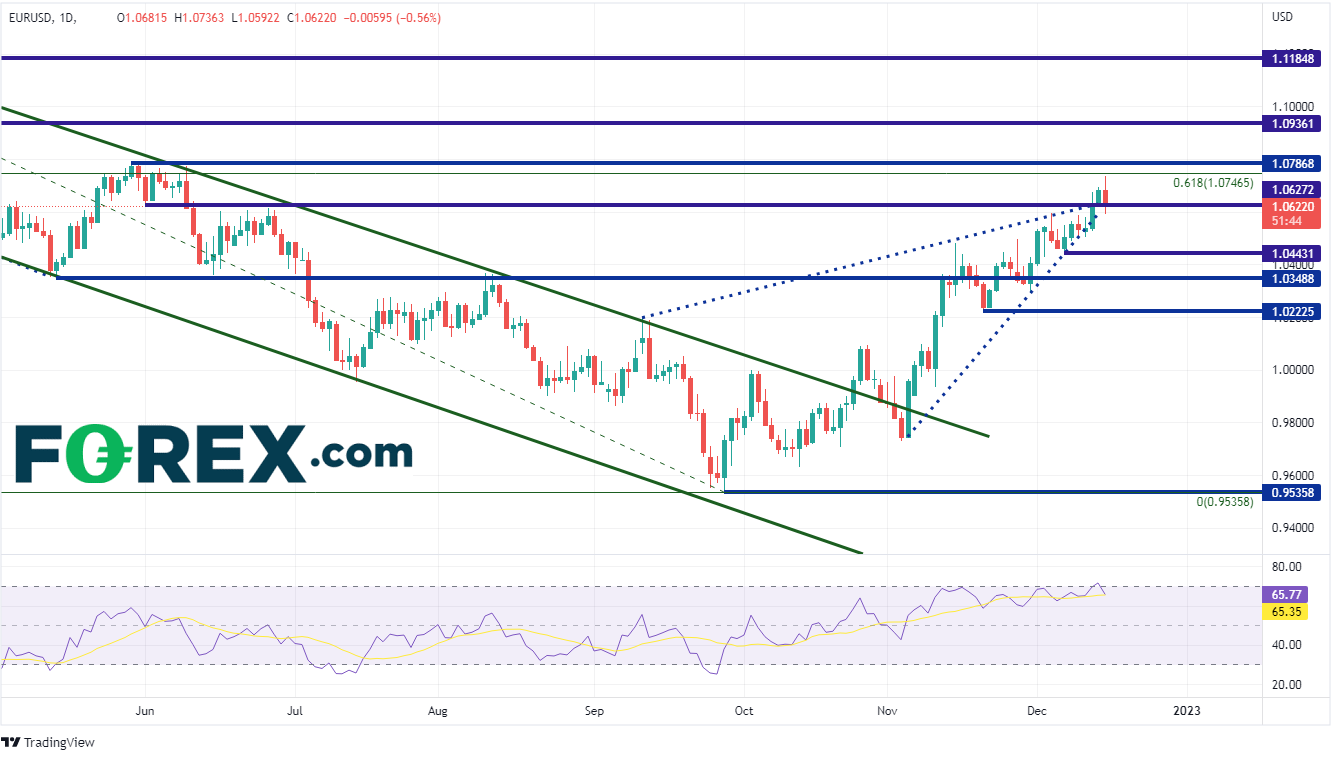 周三,联邦公开市场委员会将利率上调50个基点至4.5%,并表示在利率具有足够的约束力并且他们确信通胀迈向2%之前不会开始降息。对于联邦公开市场委员会的鹰派立场,市场波动相对较小。周四,英国央行也将利率上调50个基点,将其借贷利率提高至3.5%。英国央行行长贝利表示,MPC的最新预测表明CPI已达到峰值,但预计未来几个月仍将“非常高”。因此,前瞻性指引表明更多加息将随之而来。欧洲央行亦加息50个基点,将存款利率上调至2.0%。在随后的新闻发布会上,欧洲央行行长克里斯蒂娜·拉加德表示,“很明显,我们预计在一段时间内加息50个基点”。欧元/美元上涨100点!