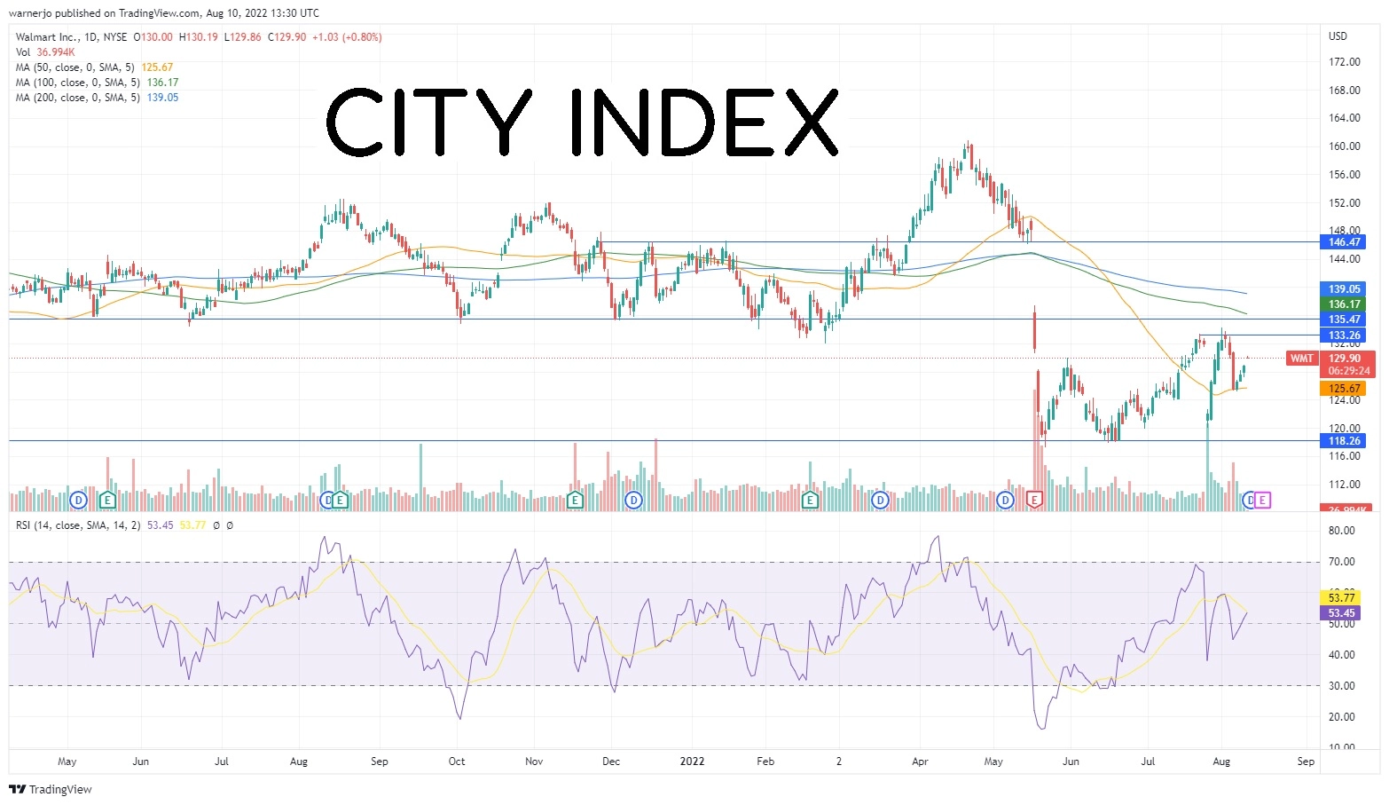 后市第一个上行目标在142,该位在疫情爆发以来既扮演过支撑位也扮演过阻力位的角色。股价的最终目标是收复146.50,从而填补5月份一季度财报公布时股价留下的缺口。41家经纪商给出149.75的平均目标股价,较为看好上涨潜力。过去5个交易时段成交量放大且保持强劲,助涨股价。
