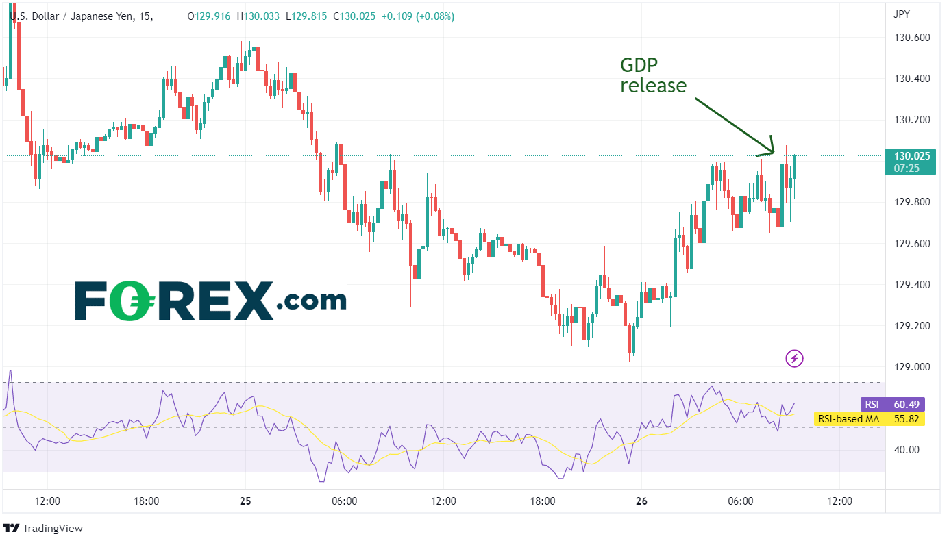 数据一发布,美元/日元从129.68蹿升至130.44。然而,市场利用反弹抛售使其又回到了130.00。