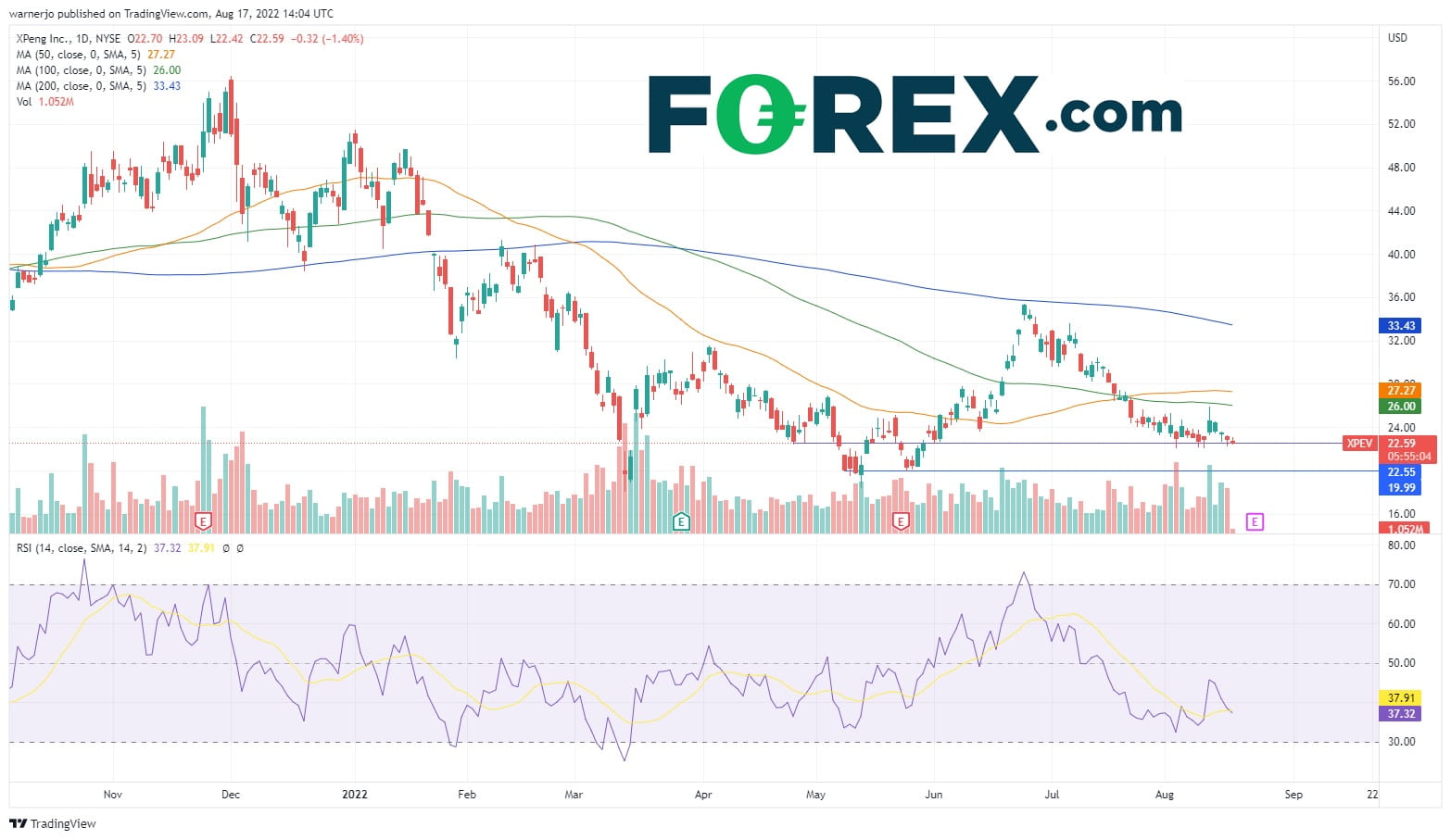 上档第一个重要目标在50天移动均线27,那是4月到6月的阻力位。6月展开的最新一次上涨未能收复200天均线,其所在的33价位再度成为焦点。请注意,23家经纪商认为小鹏汽车股价拥有上行潜力,给出40的平均目标价格。