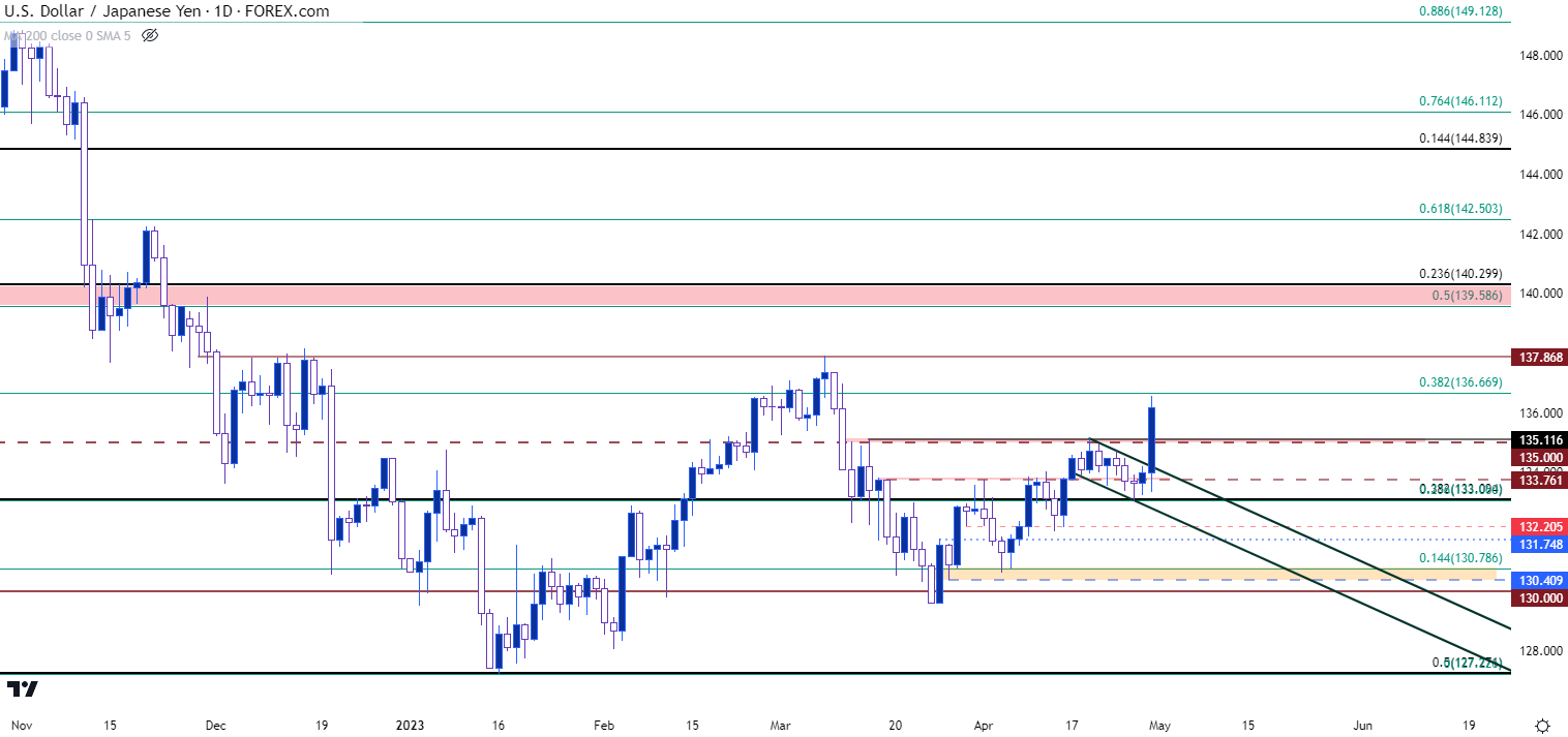 图表由James Stanley编制,美元/日元价格来自Tradingview