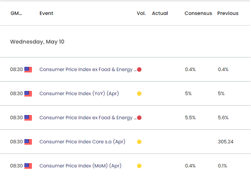 即将公布的美国CPI可能会影响金价,因为预计4月份整体数据将稳定在年化5.0%,而同期核心通胀率预计将从年化5.6%收窄至5.5%。