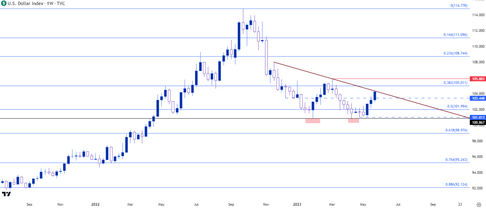 图表由James Stanley绘制,Tradingview上的欧元/美元