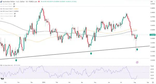利率市场隐含的全年降息预期小幅降温至90个基点,帮助美债收益率和美元指数从低点反弹。此前正是激进的降息预期(叠加日本鹰派加息)导致USDJPY套利交易的加速平仓以及全球市场的恐慌和混乱。然而问题是,若美联储不迅速行动,经济或将不可避免的陷入衰退,这同样是金融市场的巨大隐患。因此目前市场预计8月底的杰克逊霍尔央行年会上,鲍威尔会给出更明确的降息信号。