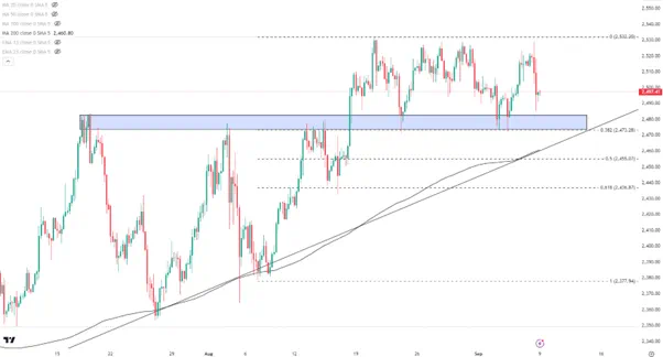 下行方向,2470/80的阻力/支撑转换区域有望继续提供有效缓冲,从而吸引多头力量入场,跌破后关注趋势线和200天均线的共同支撑2460附近。反弹方向,震荡区间上沿,也是历史高点的2530一线是多头显然的目标。