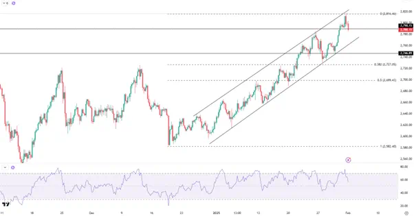 高关税可能刺激美元走强令黄金承压,也可能激发避险情绪利好黄金,因此无法简单得出一个结论。但在更大的宏观环境下(降息周期、贸易保护主义、去美元化等),黄金的上行趋势还是值得期待。金价只要不跌破通道下轨2770就有望维持上升趋势。