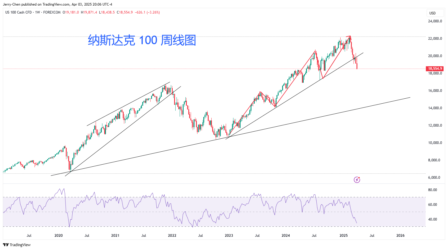 在4月9日“对等”关税生效之前,随着谈判的进行市场情绪可能会有反复,但随着企业盈利预期遭遇大幅下调,看上去美股目前正在酝酿更大级别的下行周期。