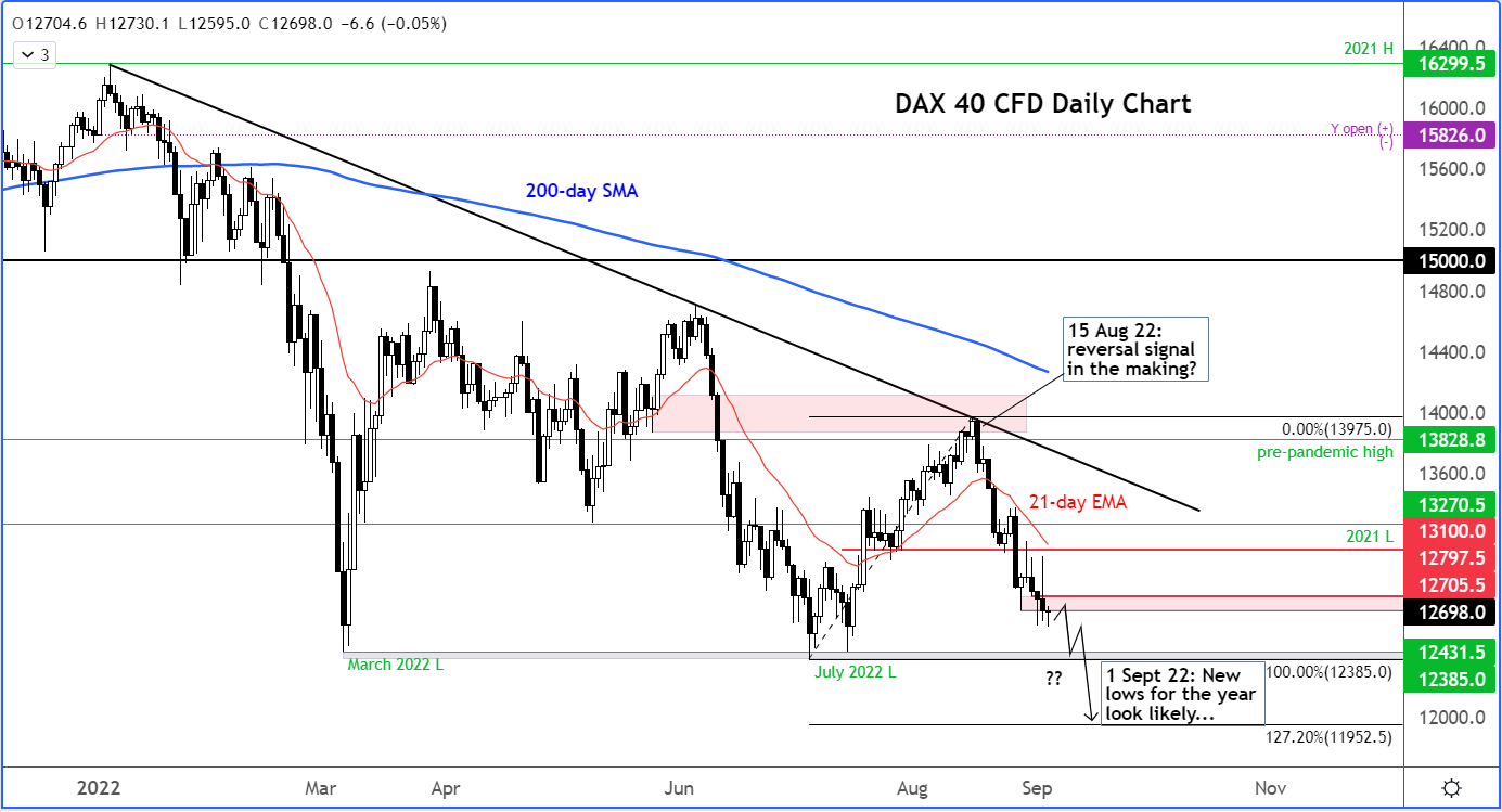 尽管欧洲各股指在伦敦时间上午十点前后自最低点成功反弹,但黯淡的宏观环境下,股市仍步履维艰。欧洲各国政府推出的生活成本危机及能源危机支持应对措施可能是带动此轮小幅反弹的背后动力。但伤害已然造成,而欧洲将迎来一个漫长而寒冷冬季的担忧升温。俄罗斯国有天然气生产商俄罗斯天然气工业股份公司(Gazprom)周五表示,将无限期停止经北溪管道输送的天然气供应,从而触发新一轮抛售行情。随着欧洲能源危机加剧,投资者处境可能进一步恶化。在本周欧洲央行会议之前,我们可能会看到德国DAX等指数创今年新低。